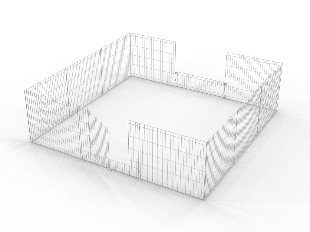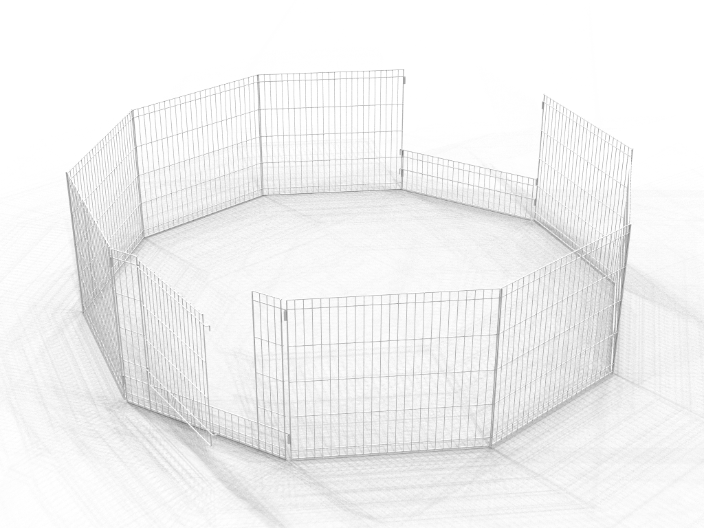 Il recinto è pieghevole e può facilmente e velocemente essere aperto e disposto nella forma che più desiderate e altrettanto velocemente richiuso.